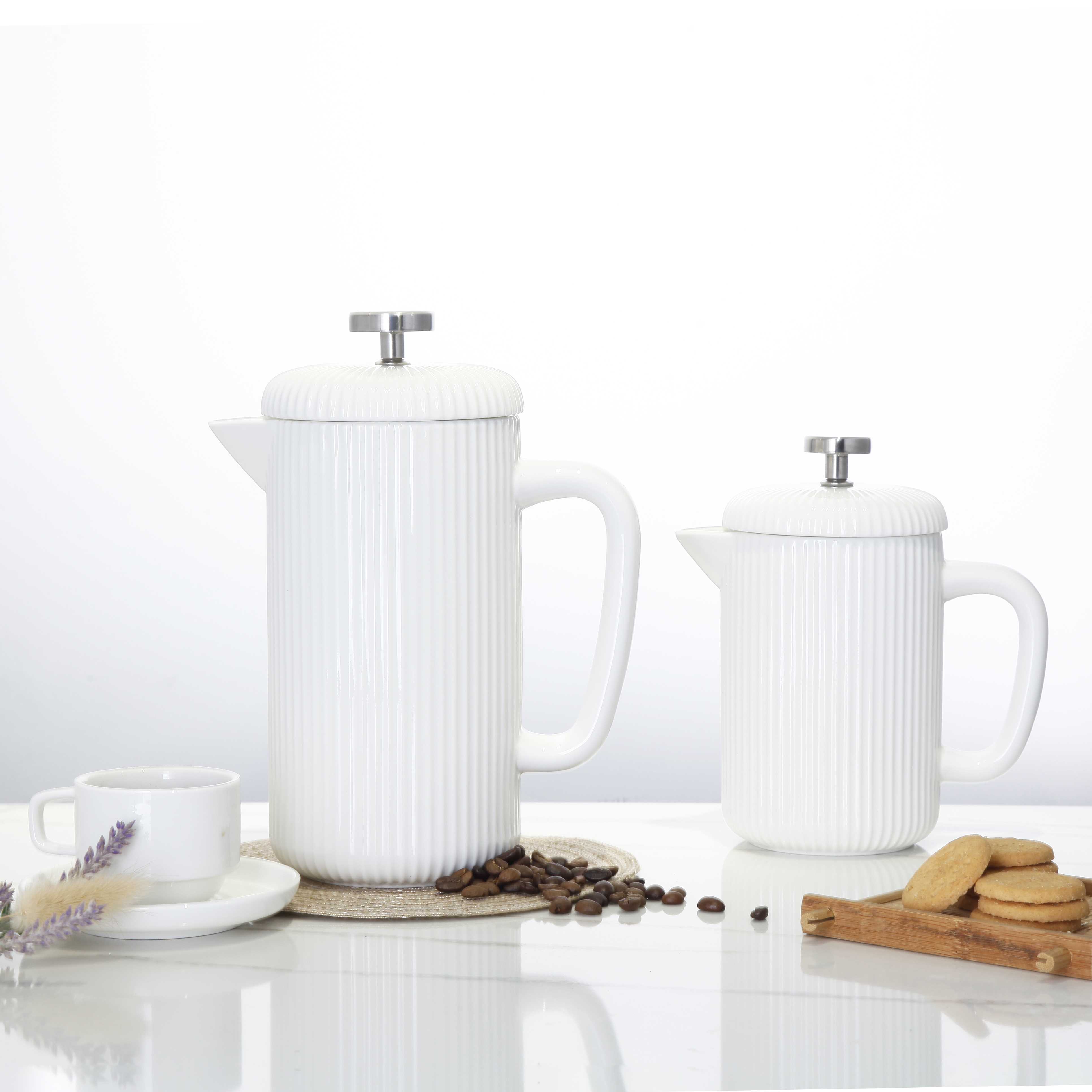 Striped Pattern Ceramic French Press