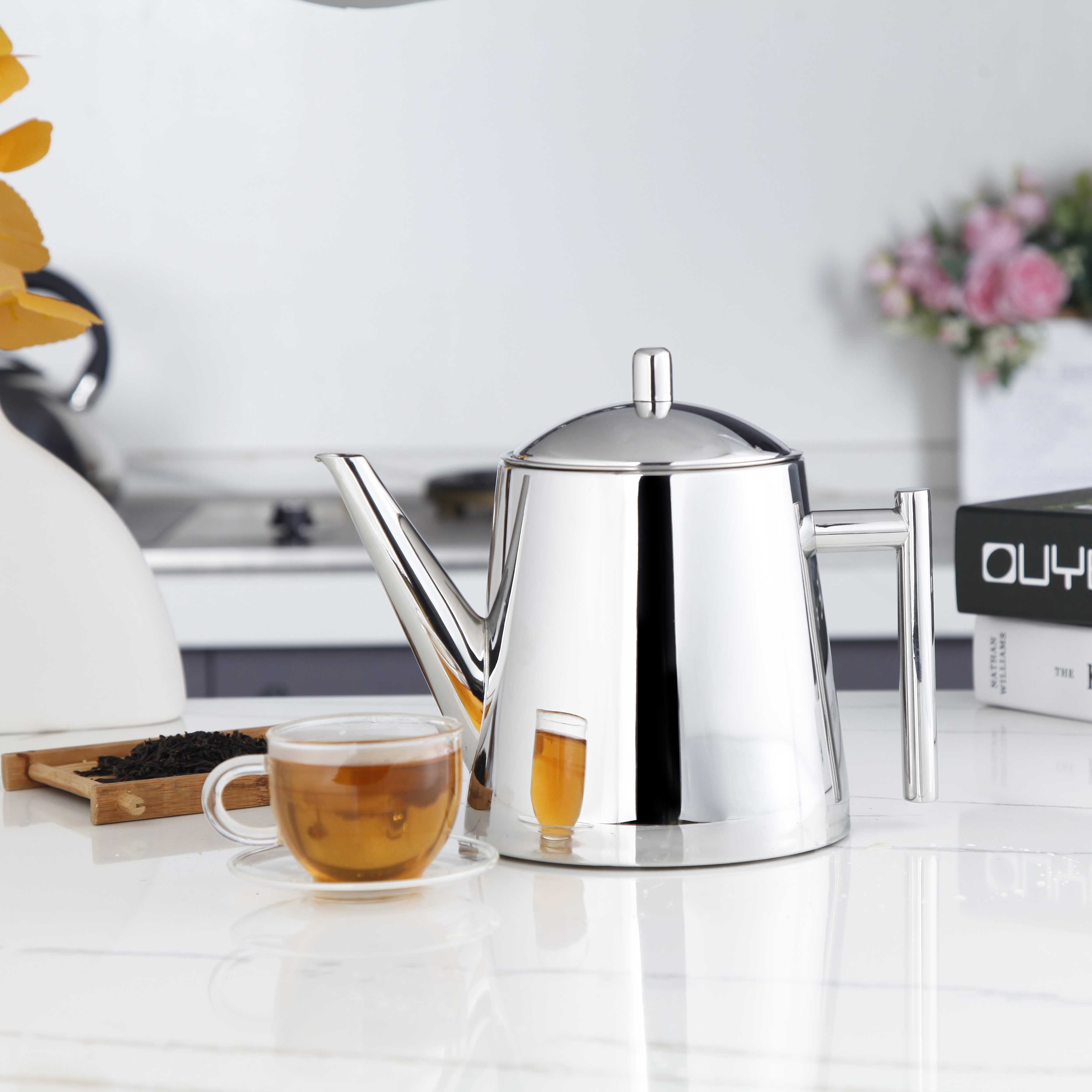This 1.0 liter teapot features double-walled stainless steel construction to keep your tea hot for hours.2024-12-26